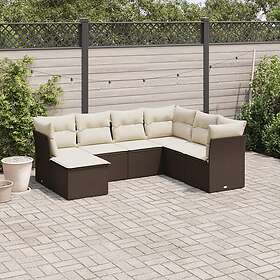 vidaXL Trädgårdssoffset med dynor 7 delar brun konstrotting 3217993