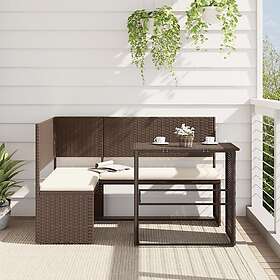 vidaXL Trädgårdssoffa med bord och dynor L-formad brun konstrotting 362346