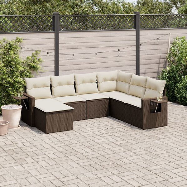 vidaXL Trädgårdssoffset med dynor 7 delar brun konstrotting 3220502