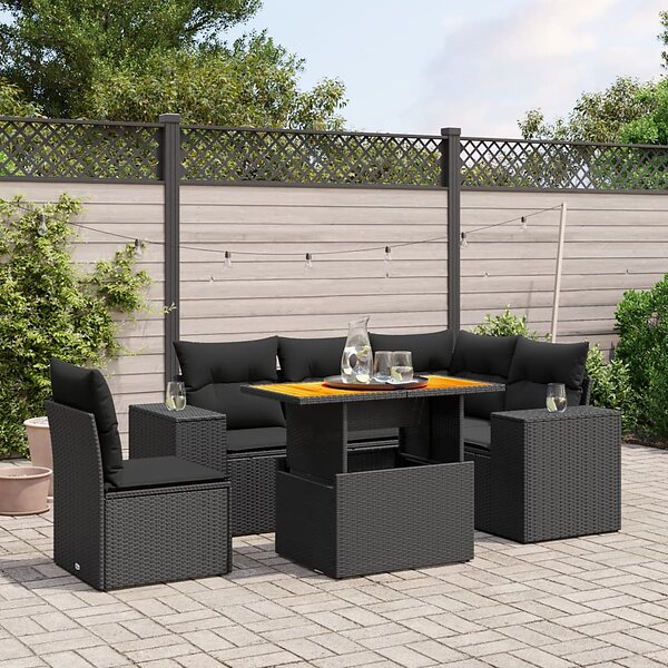 vidaXL Loungegrupp med dynor 6 delar svart konstrotting 3272637