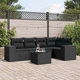 vidaXL Loungegrupp med dynor 6 delar svart konstrotting 3254872