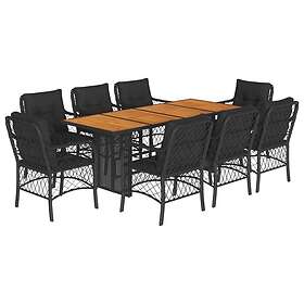 vidaXL Matgrupp för trädgården med dynor 9 delar svart konstrottning 3212073