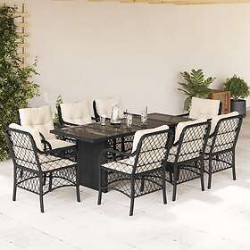 vidaXL Matgrupp för trädgården med dynor 9 delar svart konstrottning 3212055