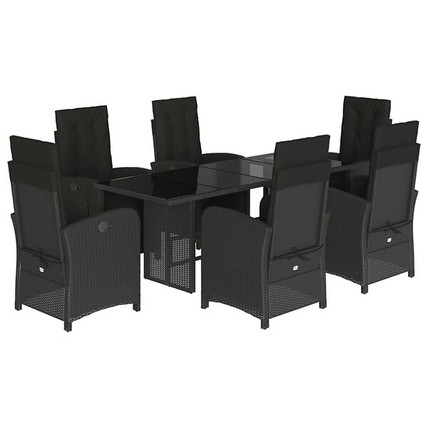 vidaXL Matgrupp för trädgården med dynor 7 delar svart konstrotting 3212488