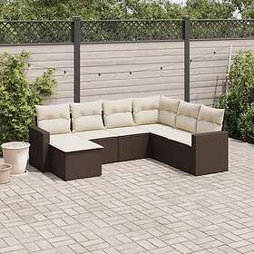 vidaXL Trädgårdssoffset med dynor 7 delar brun konstrotting 3219293