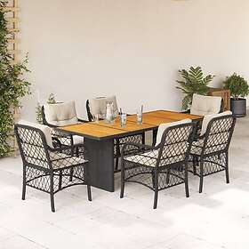vidaXL Matgrupp för trädgården med dynor 7 delar svart konstrotting 3212070