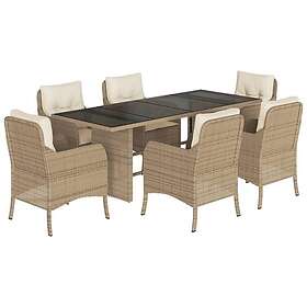 vidaXL Matgrupp för trädgården med dynor 7 delar beige konstrotting 3211886