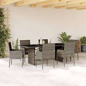 vidaXL Matgrupp för trädgården med dynor 7 delar grå konstrotting 3213508