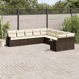 vidaXL Loungegrupp 10 delar med brun dynor konstrotting 3253050