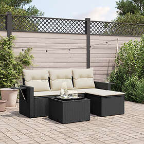 vidaXL Soffgrupp för trädgård med dynor 4 delar svart konstrotting 3252403