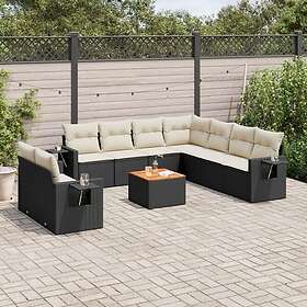 vidaXL Loungegrupp 10 delar med svarta dynor konstrotting 3256959