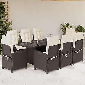 vidaXL Matgrupp för trädgården med dynor 9 delar konstrotting brun 3212688