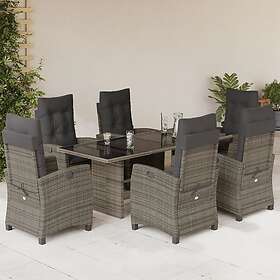 vidaXL Matgrupp för trädgården med dynor 7 delar grå konstrotting 3212689