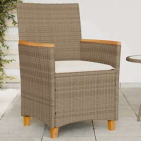vidaXL Trädgårdsstolar m.dynor 2 st beige konstrotting och massivt trä 368722