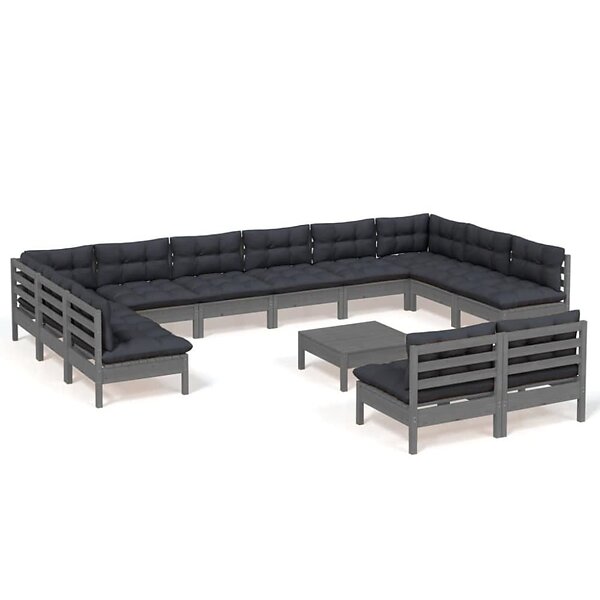 vidaXL Loungegrupp med dynor 13 delar grå massiv furu 3097231