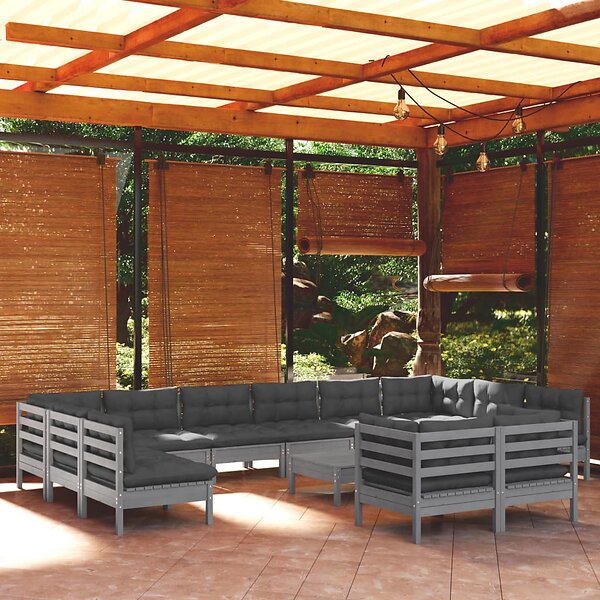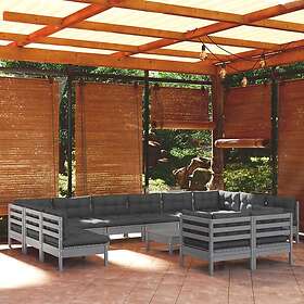 vidaXL Loungegrupp med dynor 13 delar grå massiv furu 3097279