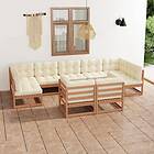 vidaXL Loungegrupp med dynor 9 delar honungsbrun massiv furu 3077257