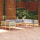 vidaXL Loungegrupp med grå dynor 9 delar massiv furu 3096898
