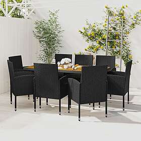 vidaXL Matgrupp för trädgården 9 delar konstrotting svart 3120111