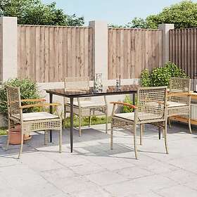 vidaXL Matgrupp för trädgården med dynor 5 delar beige konstrotting 3213627