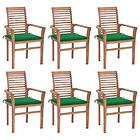vidaXL Matstolar 6 st med dynor grön massiv teak 3072951