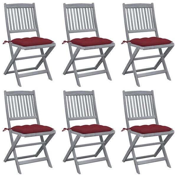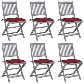 vidaXL Hopfällbara trädgårdsstolar med dynor 6 st massivt akaciaträ 3065458