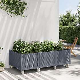 vidaXL Odlingslåda med hjul grå 150x80x54 cm PP 367978