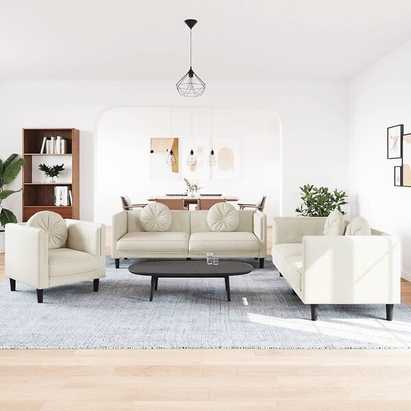 vidaXL Soffgrupp med kuddar 3 delar gräddvit sammet 3209254