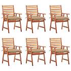 vidaXL Trädgårdsstolar 6 st med dynor massivt akaciaträ 3078365