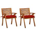 vidaXL Trädgårdsstolar med dynor 2 st massivt akaciaträ 3060843