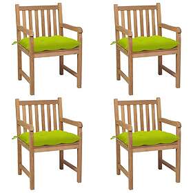 vidaXL Trädgårdsstolar med ljusgröna dynor 4 st massiv teak 3073030