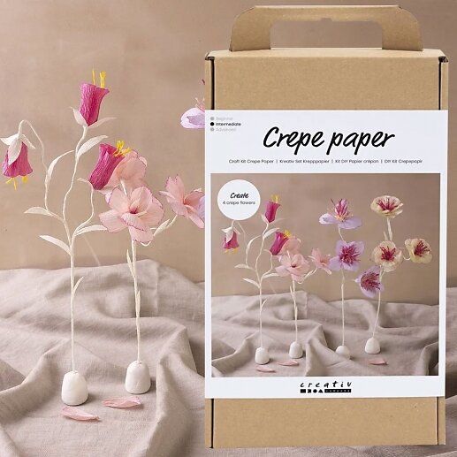DIY Creativ Pysselkit Kräppapper Blommor i Pastellfärger