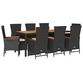 vidaXL Matgrupp för trädgården med dynor 9 delar svart konstrottning 3277518