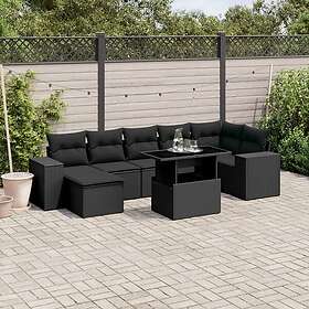 vidaXL Loungegrupp för trädgården med dynor 8 delar svart konstrotting 3269315
