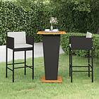 vidaXL Bargrupp för trädgården med dynor 3 delar konstrotting svart 3094798