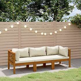 vidaXL Trädgårdssoffa med dynor gräddvit 3-sits massivt akaciaträ 3086932