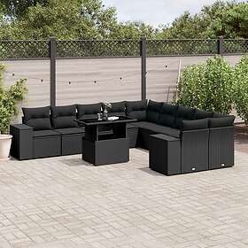 vidaXL Loungegrupp för trädgården m. dynor 11 delar konstrotting svart 3269425