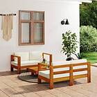 vidaXL Loungegrupp för trädgården gräddvita dynor 3 delar massivt trä 3144977