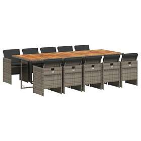 vidaXL Matgrupp för trädgården med dynor 11 delar grå konstrotting 3210578