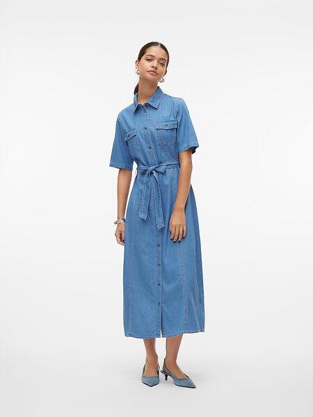 Skjortekjole, Lang kjole, Denim kjole