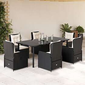 vidaXL Matgrupp för trädgården med dynor 7 delar svart konstrotting 3262838