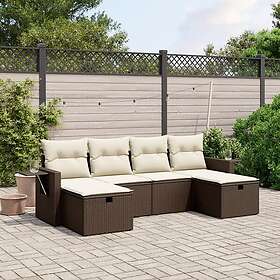 vidaXL Loungegrupp för trädgården m dynor 6 delar brun konstrotting 3263859