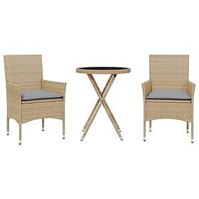 vidaXL Bistrogrupp med dynor 3 delar beige konstrotting och glas 3278751