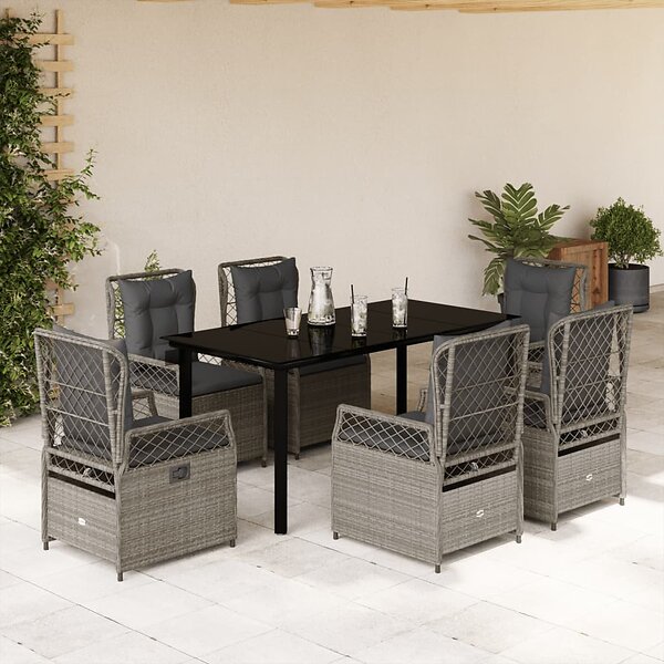 vidaXL Matgrupp för trädgården med dynor 7 delar ljusgrå konstrotting 3263038