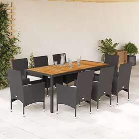 vidaXL Matgrupp för trädgården med dynor 9 delar svart konstrottning 3278668