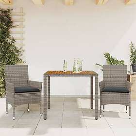 vidaXL Matgrupp för trädgården med dynor 3 delar grå konstrottning 3278675