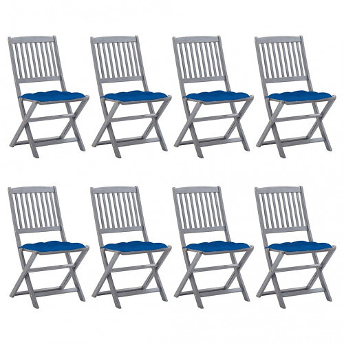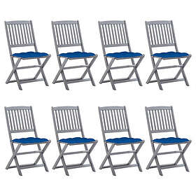 vidaXL Hopfällbara trädgårdsstolar 8 st med dynor massivt akaciaträ 3078315