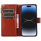 CaseOnline Dubbelflip Zipper 9-kort Apple iPhone 15 Plus Brun
