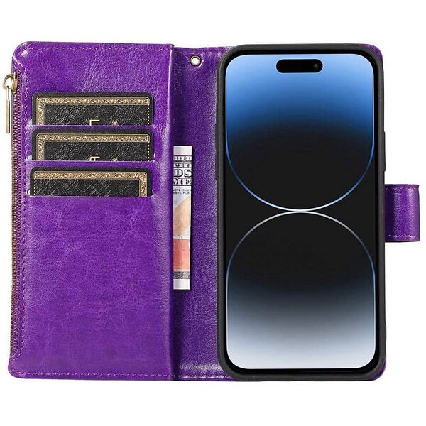 CaseOnline Dubbelflip Zipper 9-kort Apple iPhone 15 Plus Lila