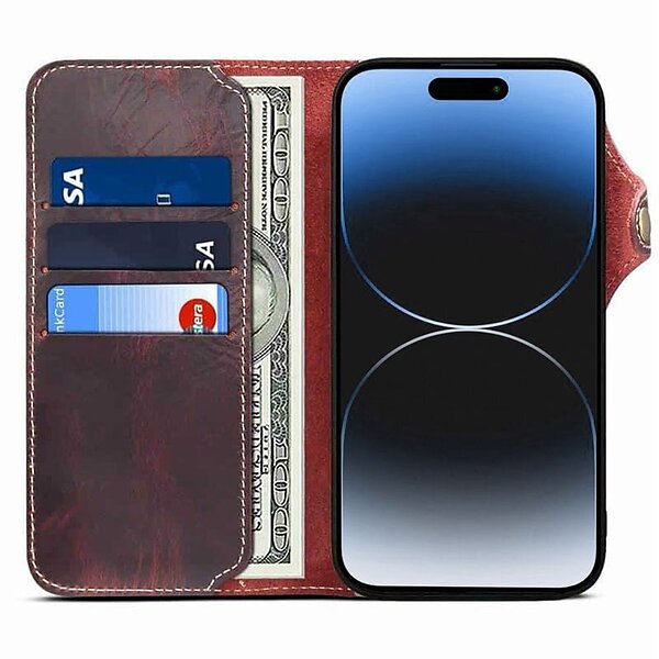 CaseOnline Mobilplånbok 3-kort äkta läder Apple iPhone 15 Pro Oxblod